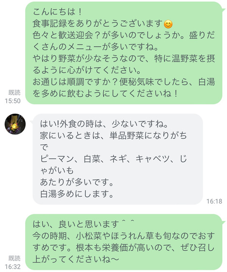 食事記録をチェックし、食生活の改善点をお伝えします。また、ご自身が気づいていない食習慣の問題点を発見し、改善のためのアドバイスを致します。