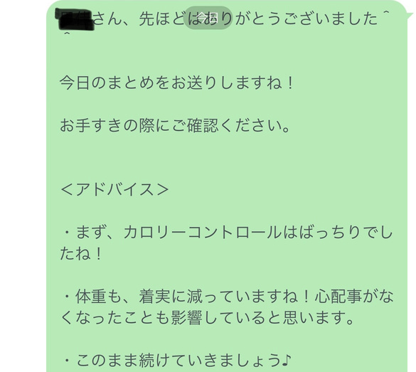 食事改善は継続が重要です。そのため、モチベーションを維持するために、定期的なアドバイスやフィードバック、問題解決のサポートなどを行います。